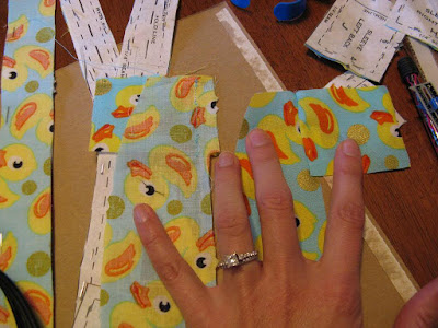I figure the easiest way is to start by cutting the original sized patterns then make it Stacie sized by using bigger seam allowances. Much easier than trying to cut down the pieces and *hoping* they are the right size.